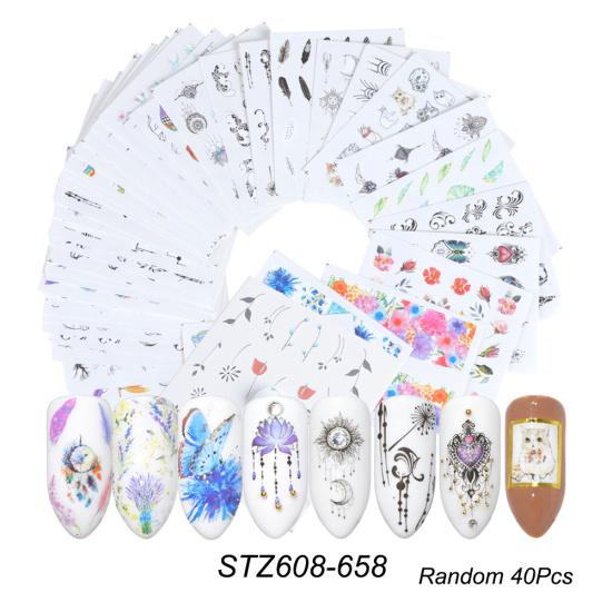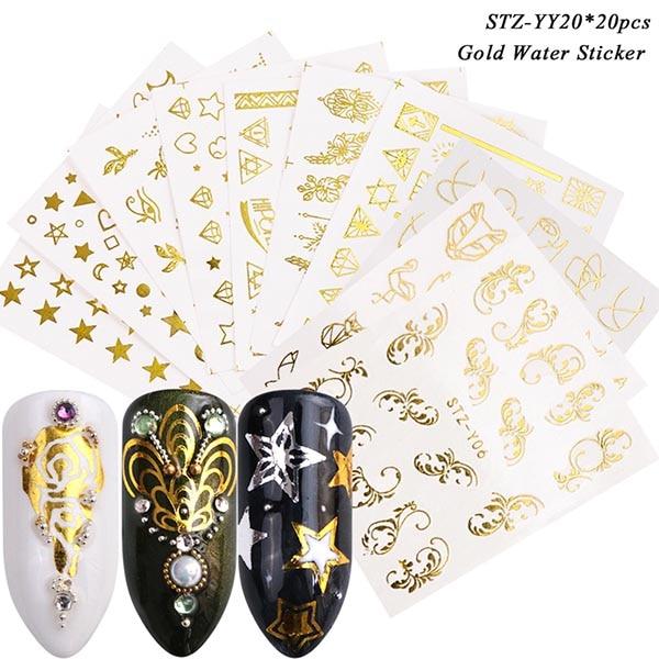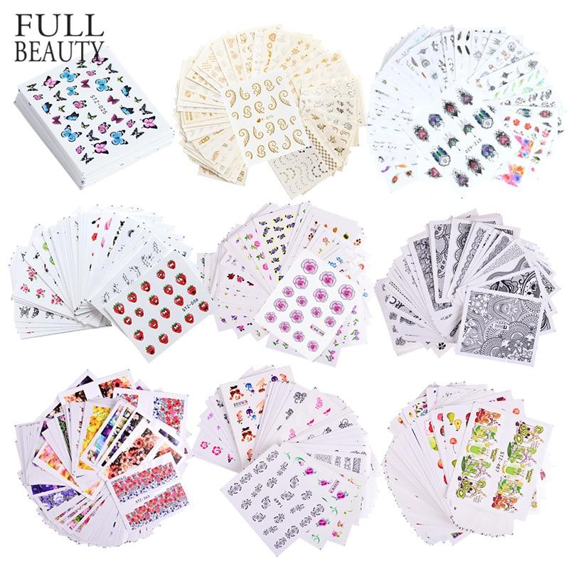 1 Set Mixed Design New Nail Art Sticker Set Black Lace Gold Silver Glitter Flower Water Decal Slider Wraps Decor Manicure CH830