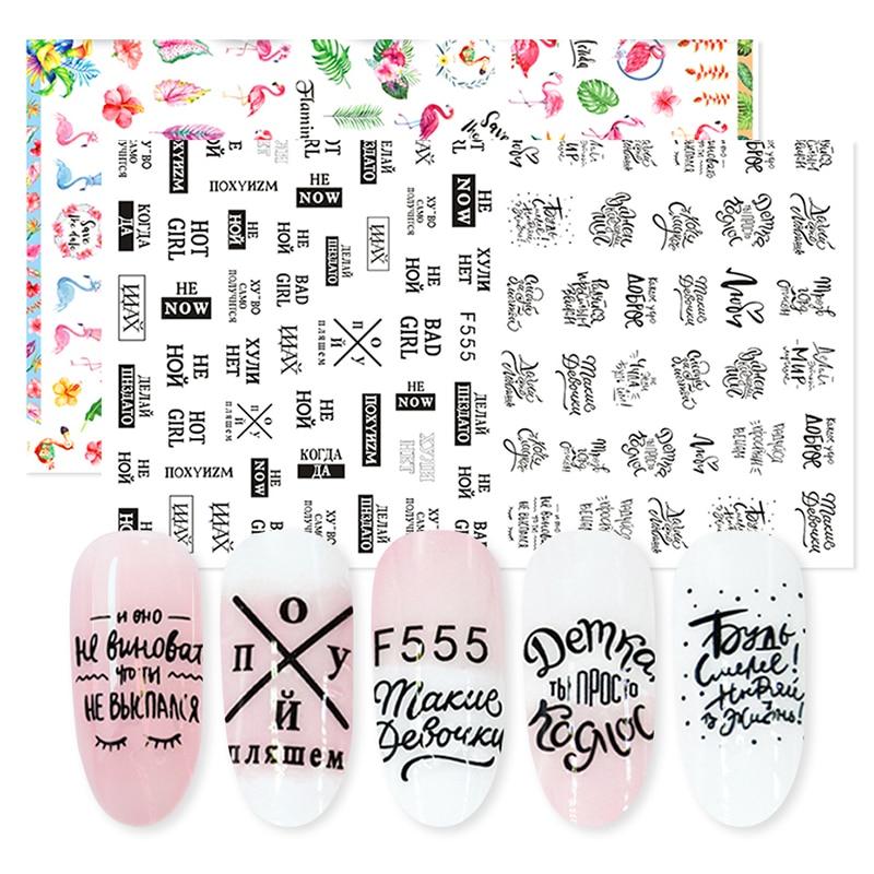 1pc Nail Sticker Black Letter Water Slider Flower Flamingo Summer Nail Art Transfer Decals Manicure Wraps Foils Tool LEF554-563