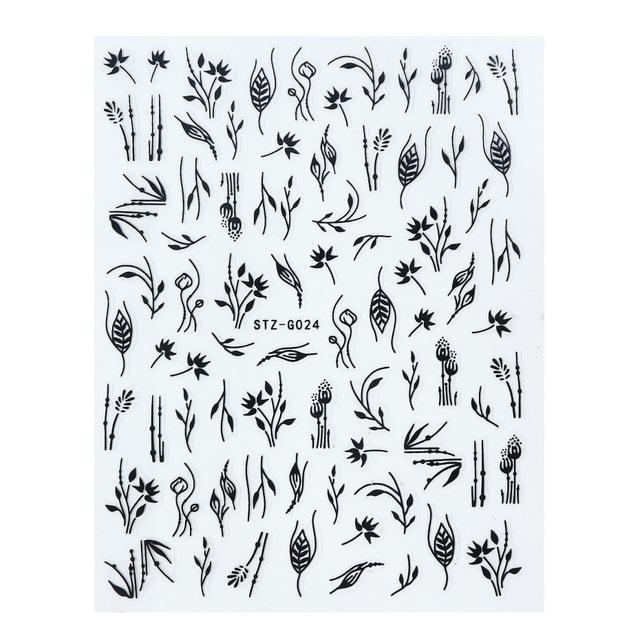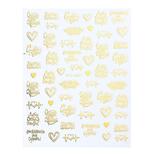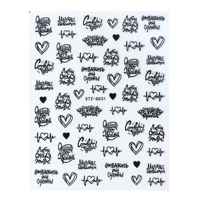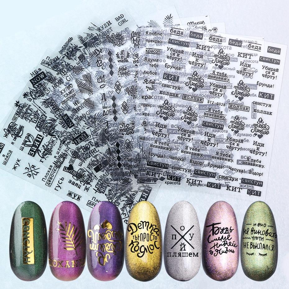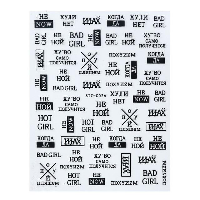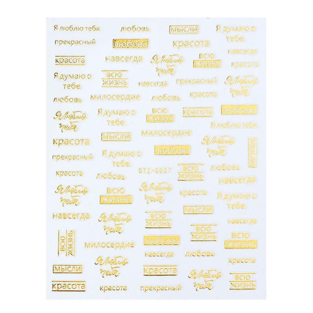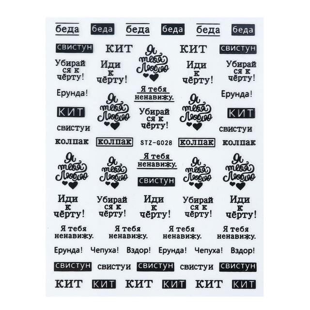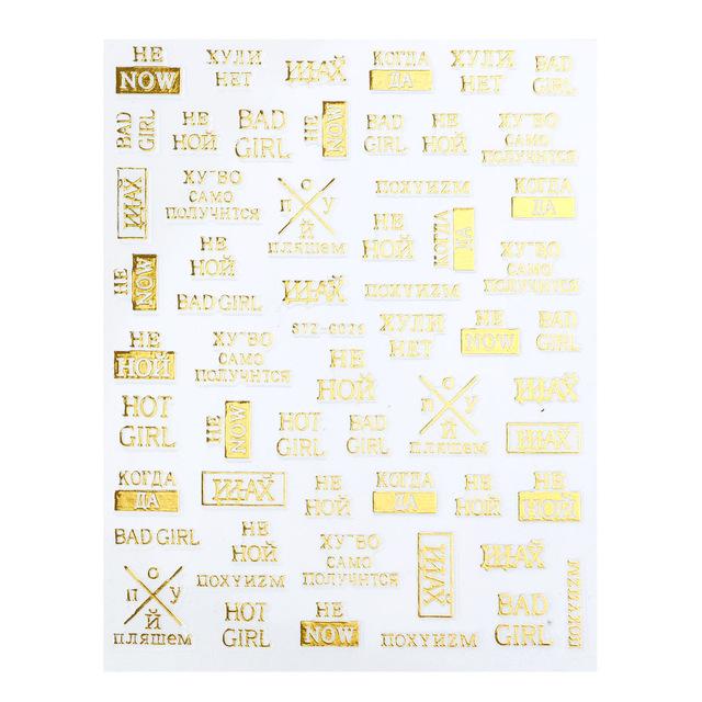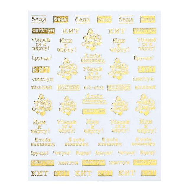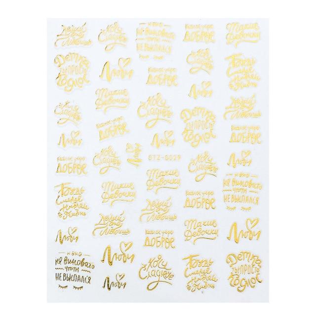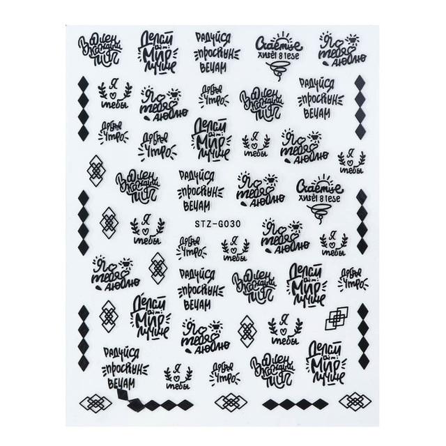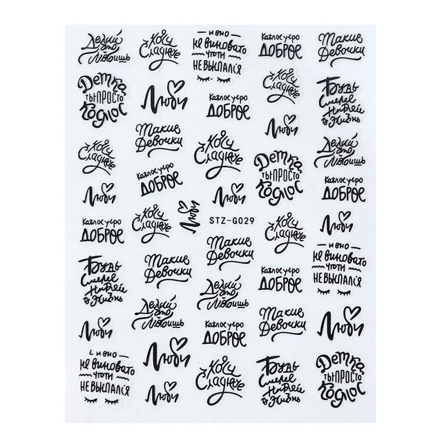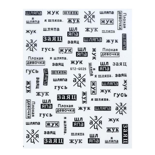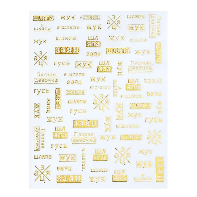 1pcs Nail Sticker Russian Letter Leaf 3D Decals Black Gold Self Adhesive Slider For Nails Art Alphabet Design Decor JISTZG023-31