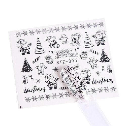 1pcs Water Nail Decals Xmas New Year Decorations Stickers For Nails Santa Claus Gift Sliders Tattoo Manicure Decor TRSTZ797-808