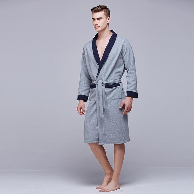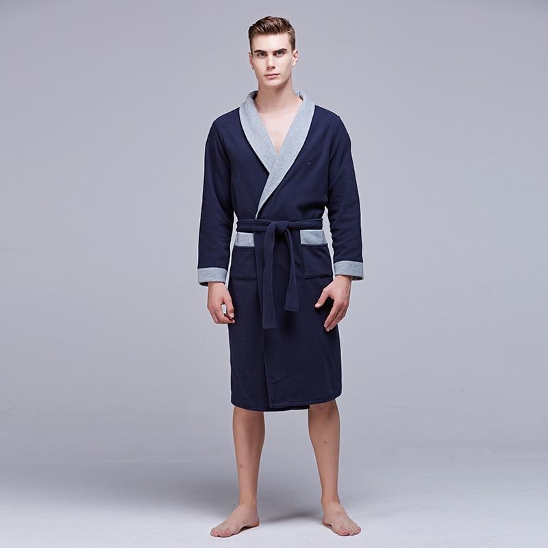 2018 Casual Men Nightwear Nightgown With Pocket Newly Long Sleeve Kimono Bathrobe Gown Loose Male Robe Sleepwear Home Clothes