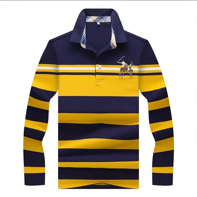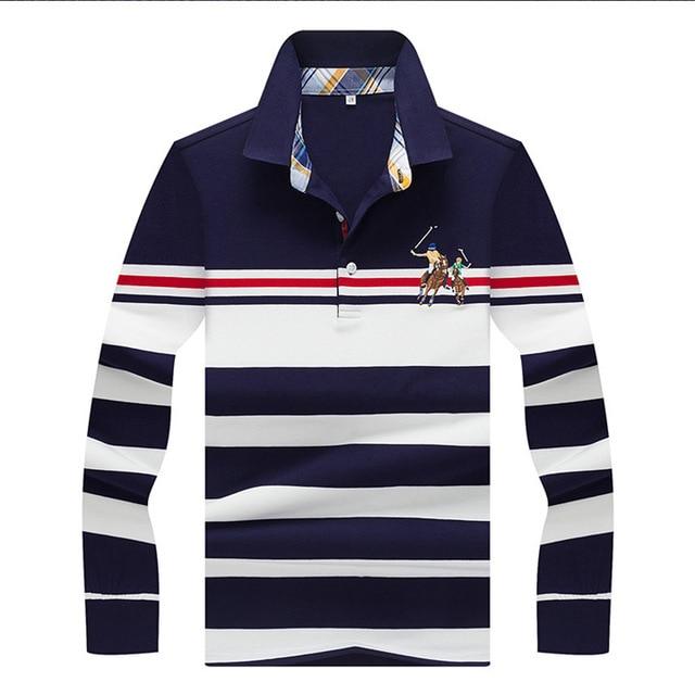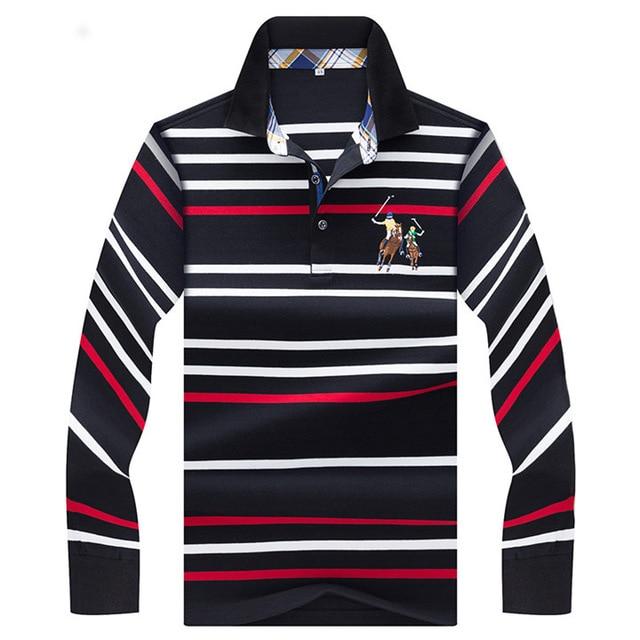 2019 New Arrival brand polo shirt men 3D Embroidery striped long sleeve men polo shirt high quality cotton camisas polo shirt