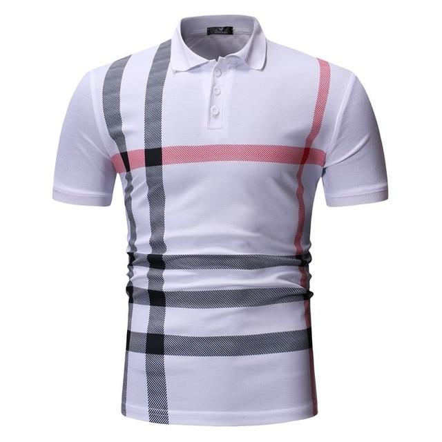 2019 Polo men's color matching striped POLO shirt men's short-sleeved lapel breathable POLO shirt casual men's clothing