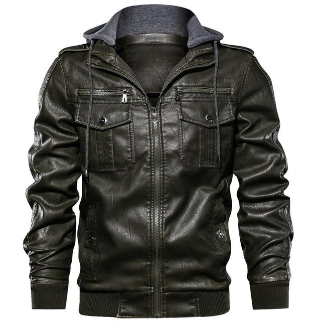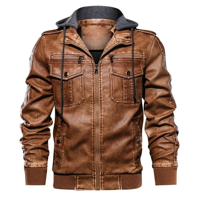 77City Killer Hooded Leather Jacket Men Motorcycle PU Leather Coats Male Euro Size Men Leather Jackets and Coats Dropshipping