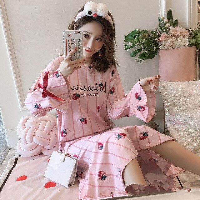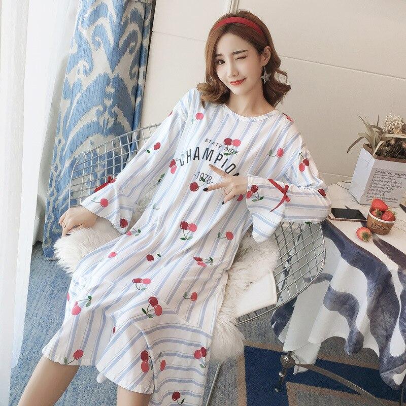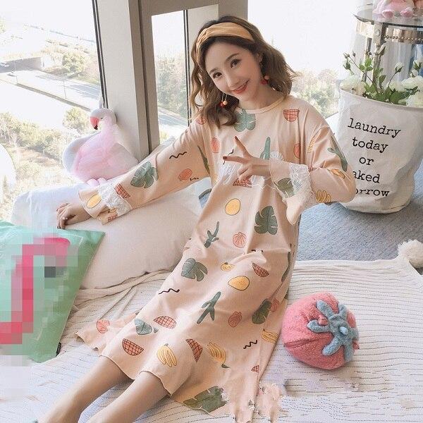 Autumn Women Sexy Nightwear Plus Size M-XXL Cotton Nightgown Sleepwear Night Dress Lingerie Robe Sexy Long Sleeve Home Clothes