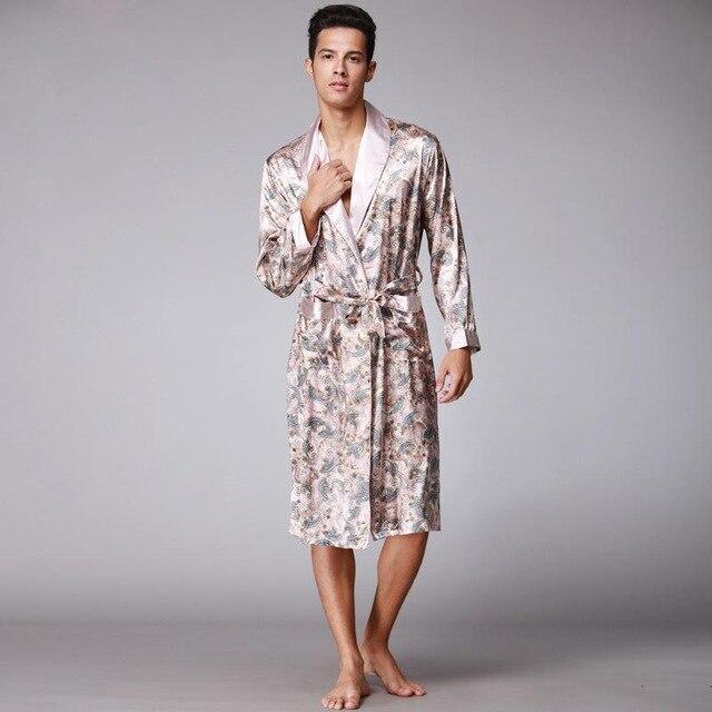 Chinese Style Men Satin Bathrobe Robe Long Sleeve Pajamas Vintage Print Nightgown Sleepwear Kimono Spring Autumn Home Wear