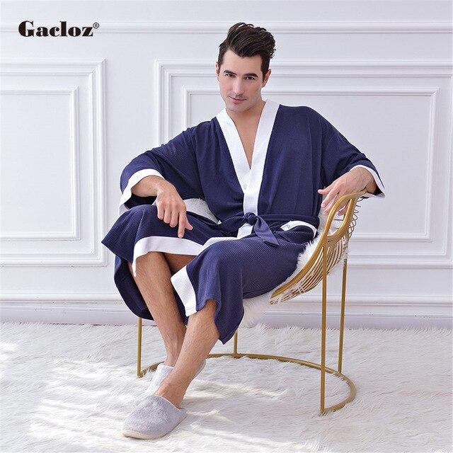 Gacloz Men Luxury Bathrobe Long Kimono Sauna Bath Robe Cotton Waffle Sleepwear Nightgown