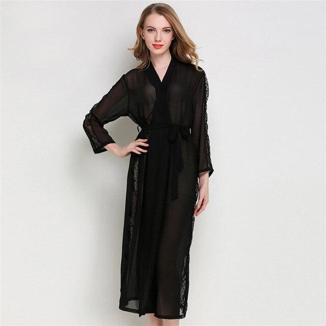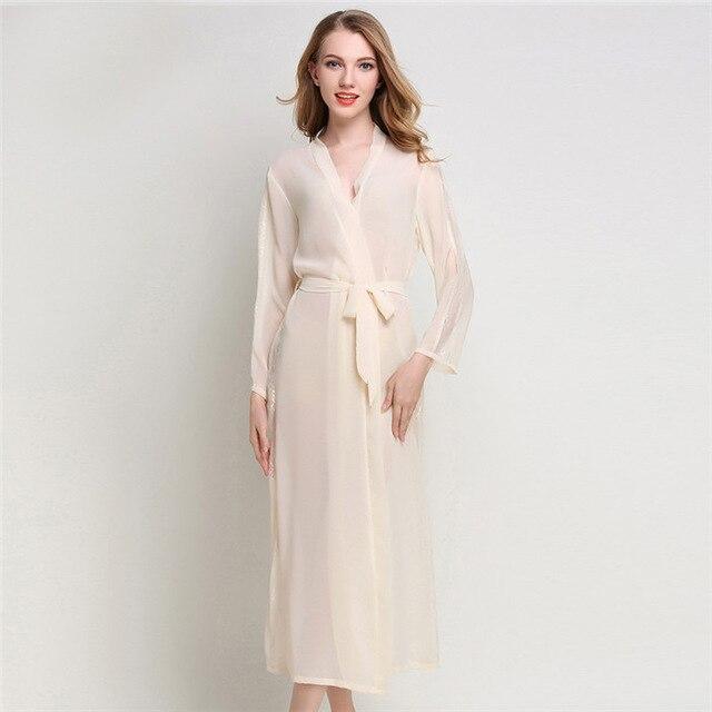 Hot Lady Chiffon Nightgown Bride Wedding Robe Soft Satin Sleepwear Sexy Long Perspective Nightdress Casual Kimono Gown One Size