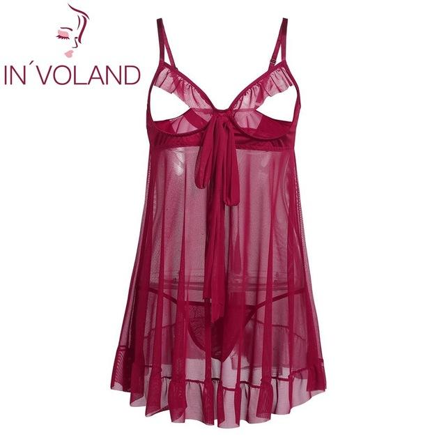 IN'VOLAND Plus Size Women Sexy Lingerie Dress Sleepwear 4XL Cupless Ruffled Sheer Babydoll Set Nightgowns Sleepshirt With Thongs