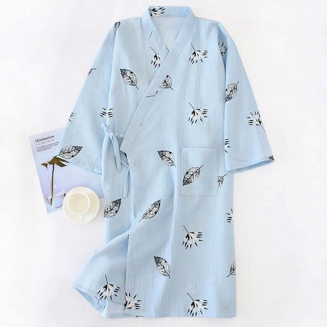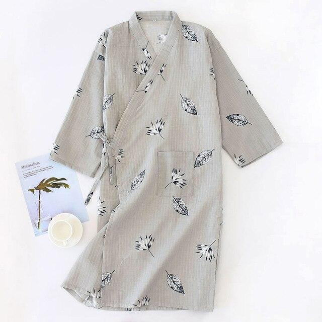 Men's Gauze Cotton Thin Summer Bathrobe Men Kimono Bath Robe Breathable Soft Loose Casual Men Sleepwear Long Sleeve Nightgown
