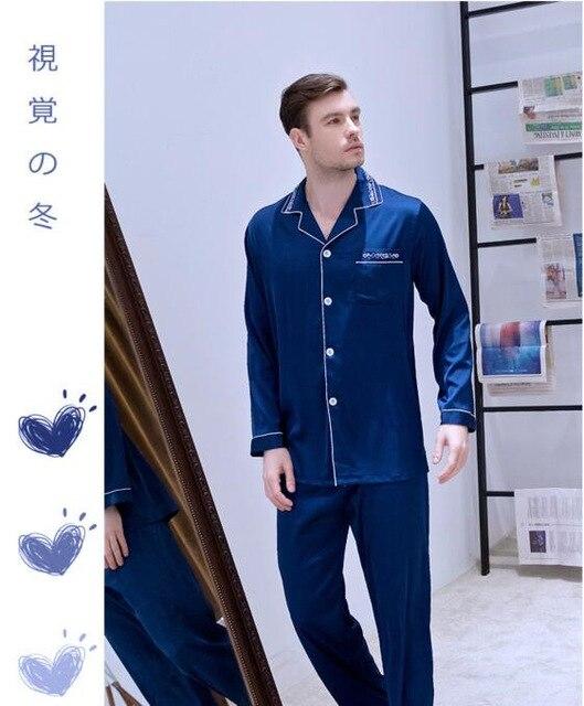 Men's Long Sleeved New Suit Set Household Clothing Ice Silk Satin Leisure Sleepwear Students Plus Size Youth Nightgown J039