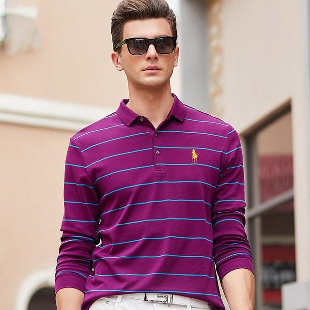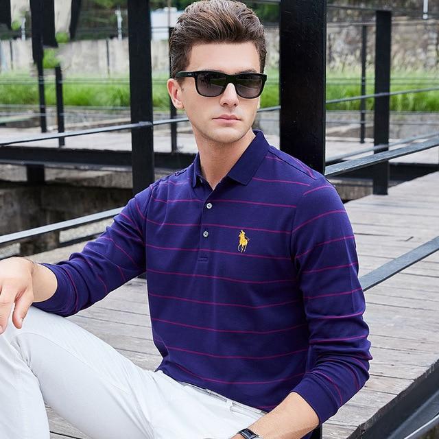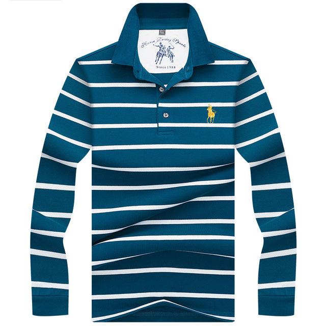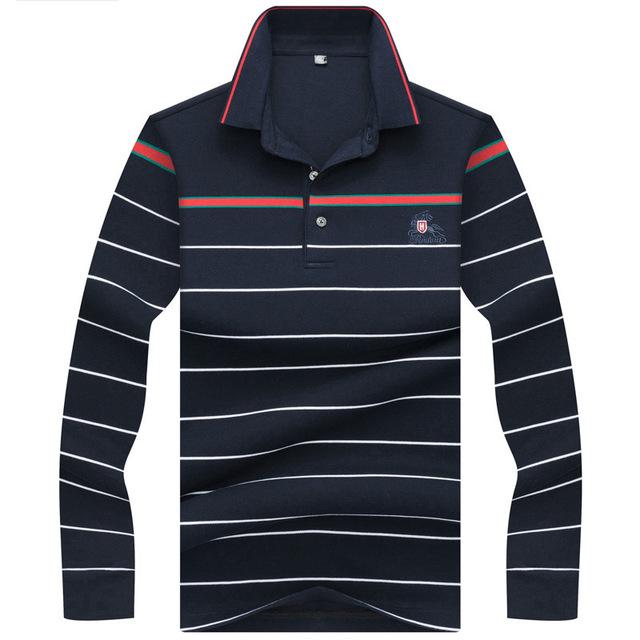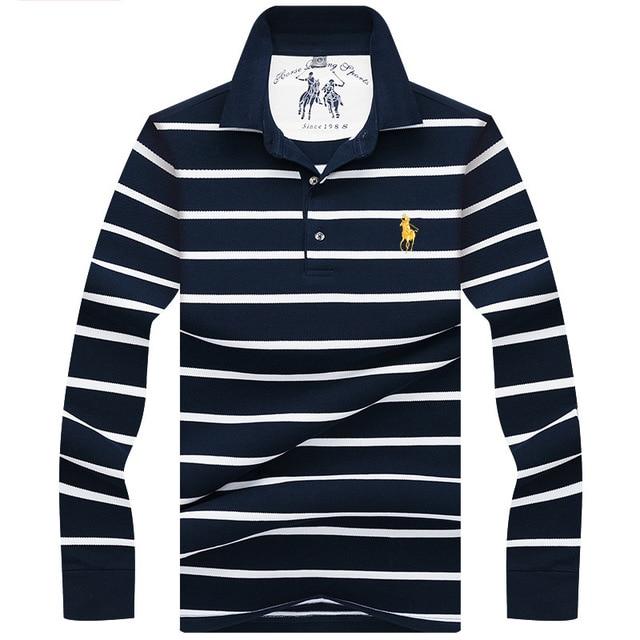 New Casual Men's Solid Striped Shirts Cotton 3D Embroidery Long sleeve Polos Mens Slim Fit Business Turn-down Polo Shirt Male