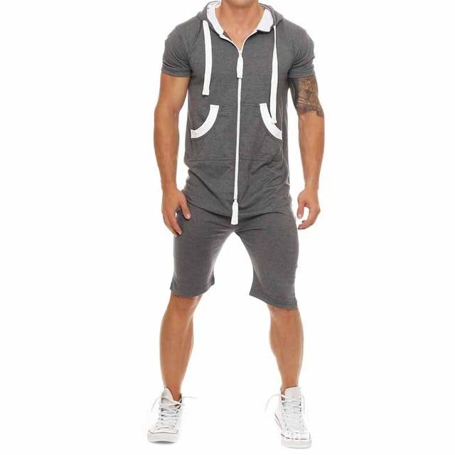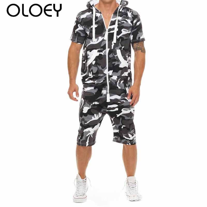 OLOEY men romper black camo mens sport suits cotton zip mens sweat suits one-piece tracksuit set male joggers sporting jumpsuits