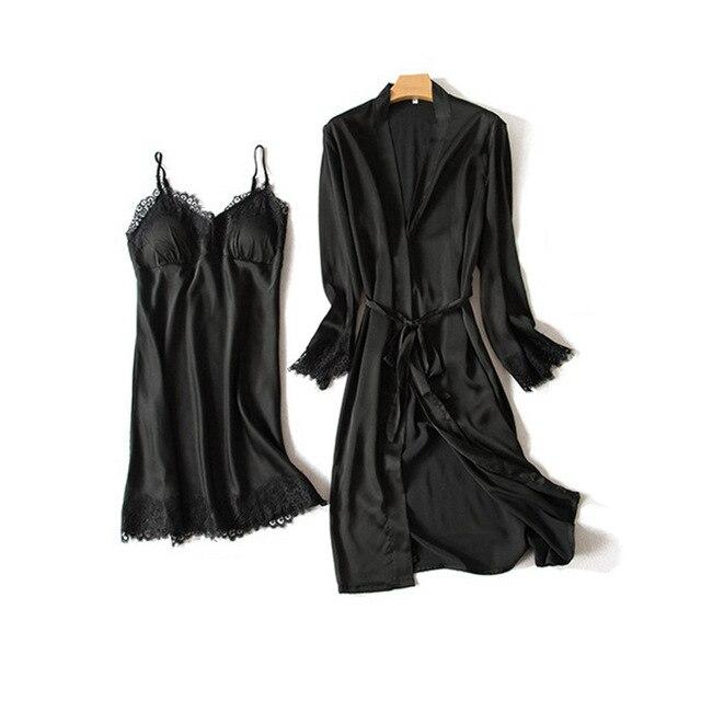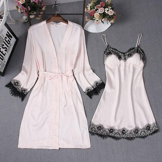 Pajamas Set Robe Hot Winter Sexy Lace Nightgowns Women Bathrobe Nighties Dress Long Sleeve Blouse Female Sleepwear Pijama