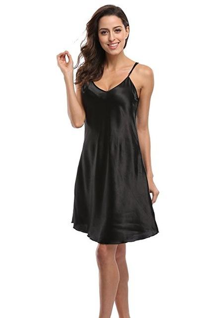 Sexy Mini Lady Spaghetti Strap Nightgown Sleepshirt Women's Satin Nightshirts Camisole Nightgown Chemises Slip Sleepwear
