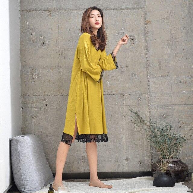 Summer Loose Modal Sleeping Skirt Summer Long Sleeve Lace Nightwear Plus Size Long Nightgowns Sexy Sleepshirts Naked Sleeping