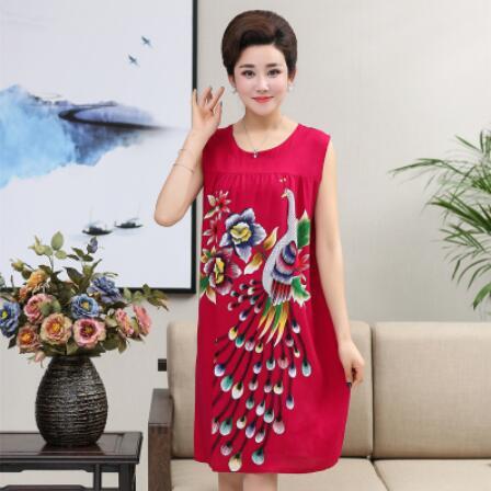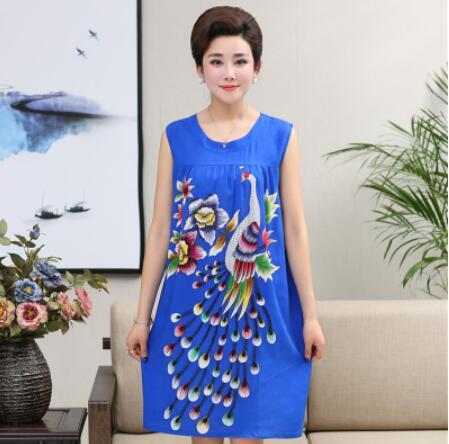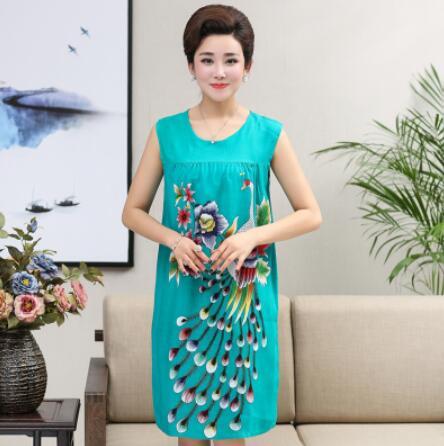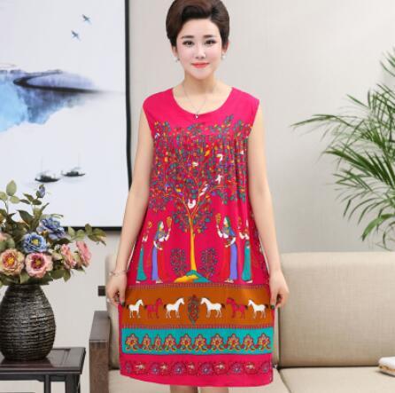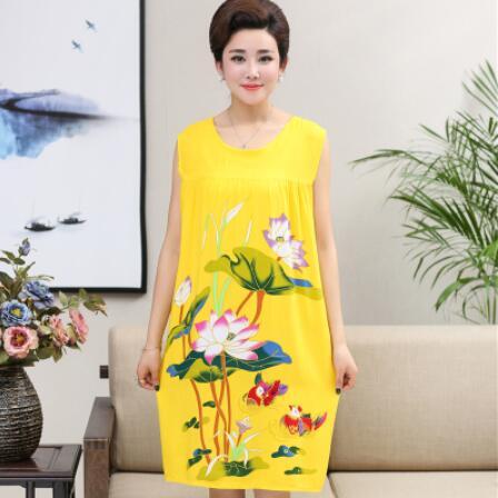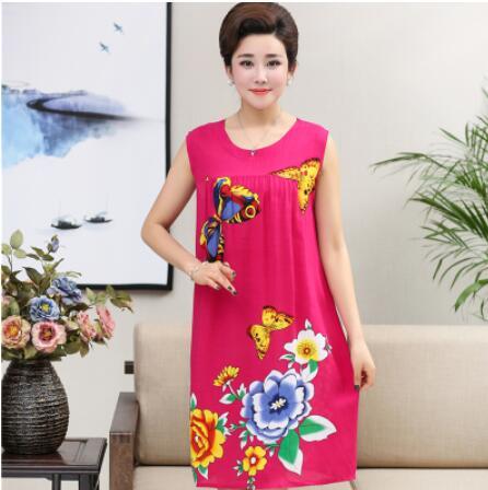 Summer Sexy Cotton Sleepwear Nightgown Women Night Shirt Dress Middle age Female Casual Home Clothes Loose Print Nightdress