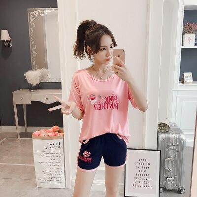 summer women Comfortable Pajamas Set long Sleeve Nightgown Cartoon printing Cute Sleepwear suit Girl short pants Pijama Mujer