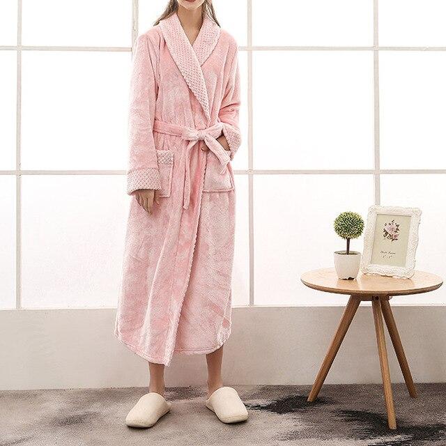Winter Fashion Coral Fleece Men'S Robe Kimono Bathrobe Nightgown Thick Warm Long Sleeve Belted Sleepwear Bath Night Gown Couple