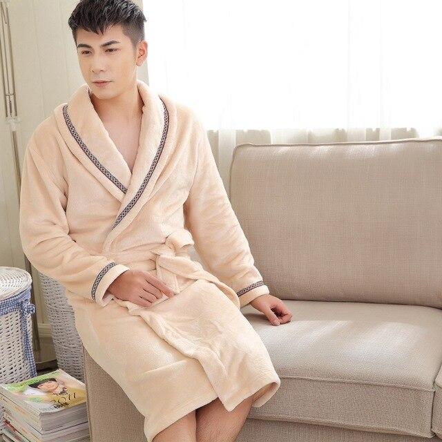 Winter Flannel Robe Lovers Thick Warm Bathrobe Kimono V-Neck Long Dressing NightGown XXL Plus Size Knitted Sold for Men Robes