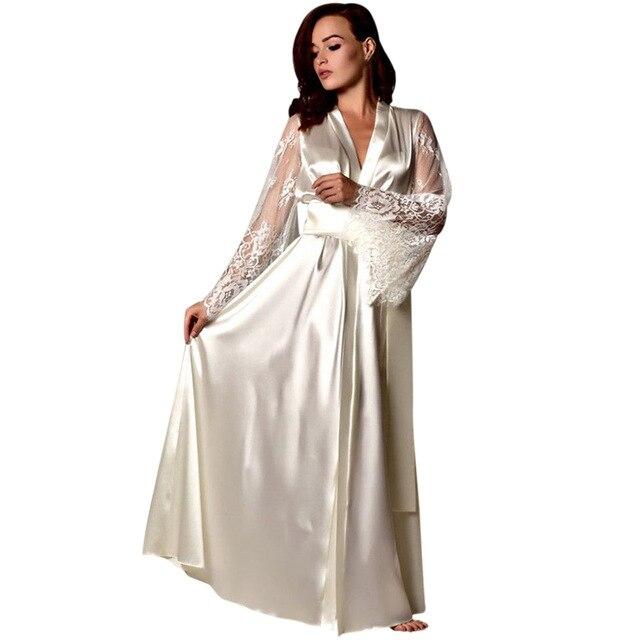 Women Satin Long Nightdress Silk Lace Lingerie Nightgown Sleepwear Sexy Robe sleepwear women sexy 2019 %8