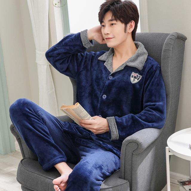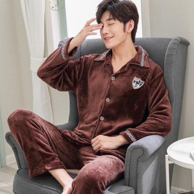 Yuzhenli 2018 Winter Autumn Nightgown Flannel Men's Clothing Mens Pajamas Set Plus Size Long Sleeve pyjamas pyjama hombre 3XL