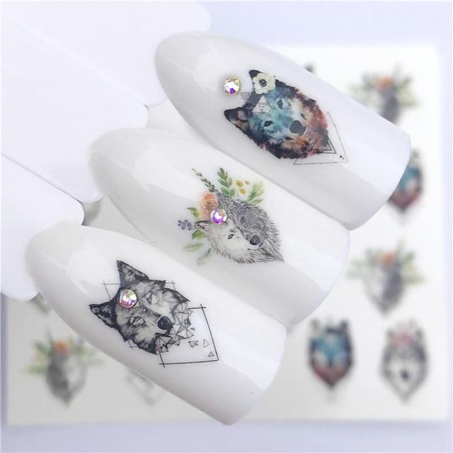 YZWLE Nail sticker Art Decoration Slider Fox Wolf Animal Adhesive Design Water Decal Manicure Lacquer Accessoires Polish Foil
