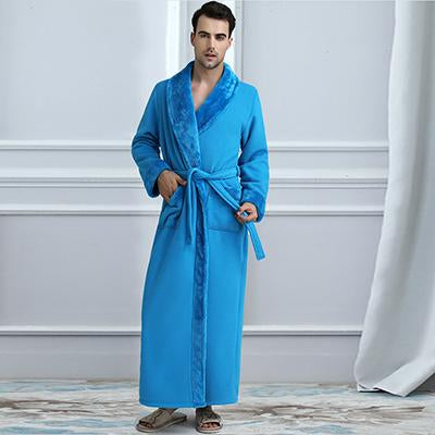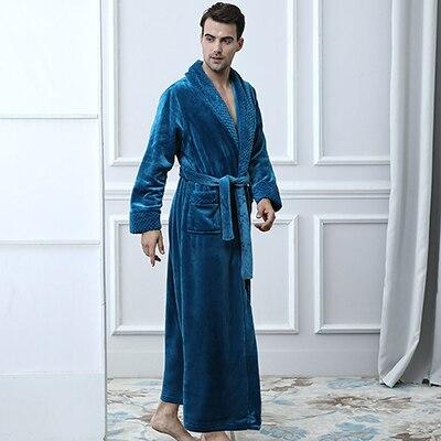 Men Winter Extra Long Thick Warm Shawl Collar Bath Robe Mens Thermal Flannel Bathrobe Male Peignoir Homme Coral Fleece Nightgown