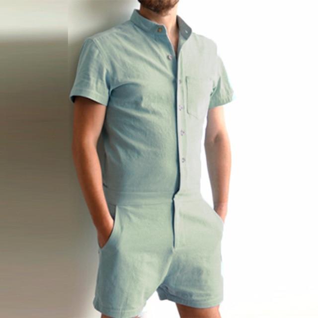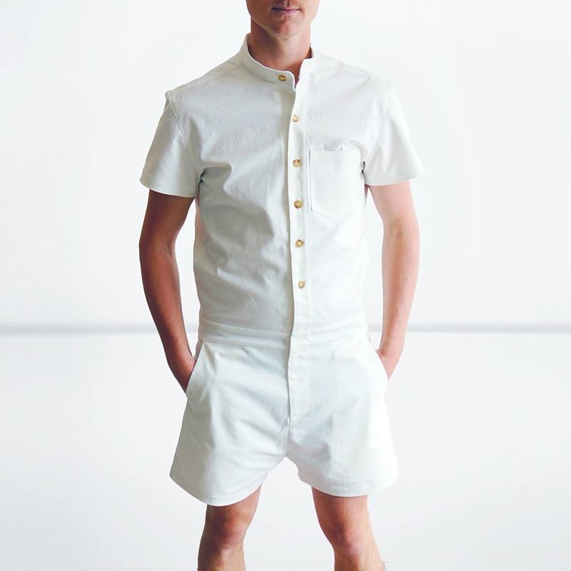 New Fashion Men Rompers Short Sleeve Male Stretch Slim Fit Jumpsuit Cargo Short Tops Trousers Overalls Casual Men Tracksuit