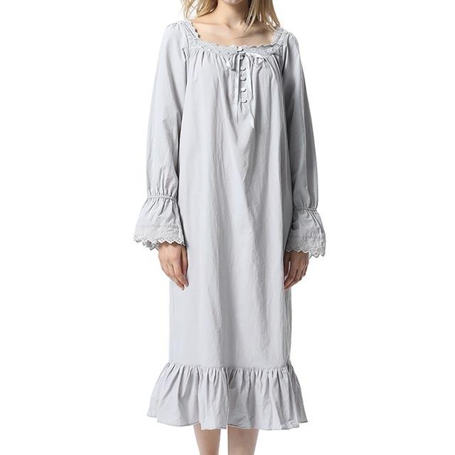 Women's Vintage Nighty For Sex Fancy Nightgown Cotton Home Dress Long Sexy Nightwear Long Sleeve